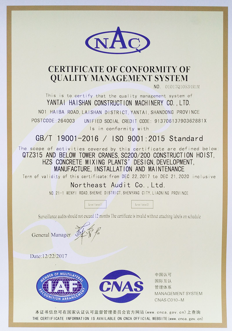 煙臺海山建筑機械有限公司坐落于山東省煙臺市高新技術開發區,占地面積160000多平方米,目前擁有1200余名員工。秉承誠信·勤奮·執著·創新的企業發展理念,以人才·質量·管理·服務為企業發展途徑...