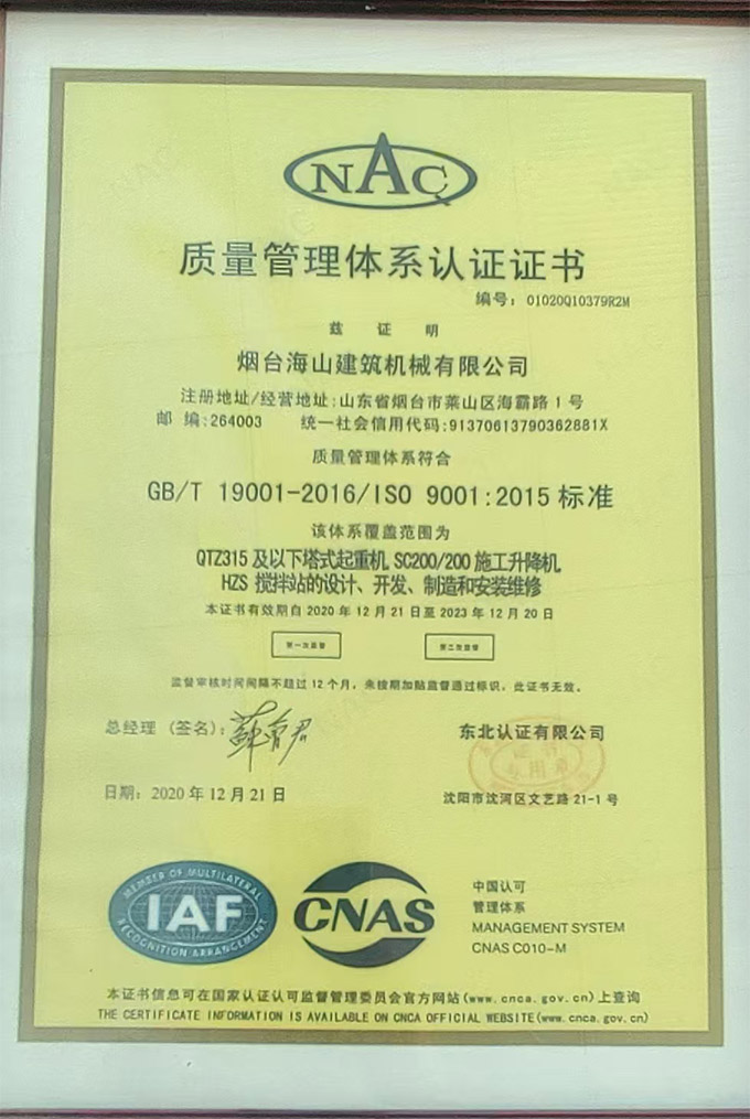 煙臺海山建筑機械有限公司坐落于山東省煙臺市高新技術開發區,占地面積160000多平方米,目前擁有1200余名員工。秉承誠信·勤奮·執著·創新的企業發展理念,以人才·質量·管理·服務為企業發展途徑...